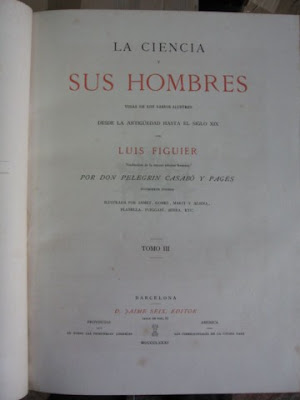 Vida de los sabios ilustres desde la antiguidad hasta el siclo XIX. Segunda edicion. Barcelona. Jaime Seix - Editor, 1879-1880- 1881. Traduccion de la tercera edicion Francesa, por Don Pelegrin Casabó y Pagés. Ilustrada por Arnet Gomez, Marti y Alcina, Planella, Puiggaré, Serra, etc. In-4.º grd.; 3 volumes; de 1044, 1076, 990 págs. Profusamente ilustrada com 127 estampas a cores fora do texto. Exemplares com bonita lombada em pele € 300,00